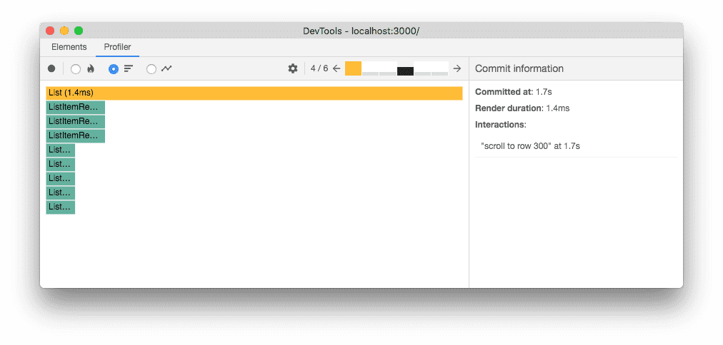 For example, the commit shown above took a total of 18.4ms to render.